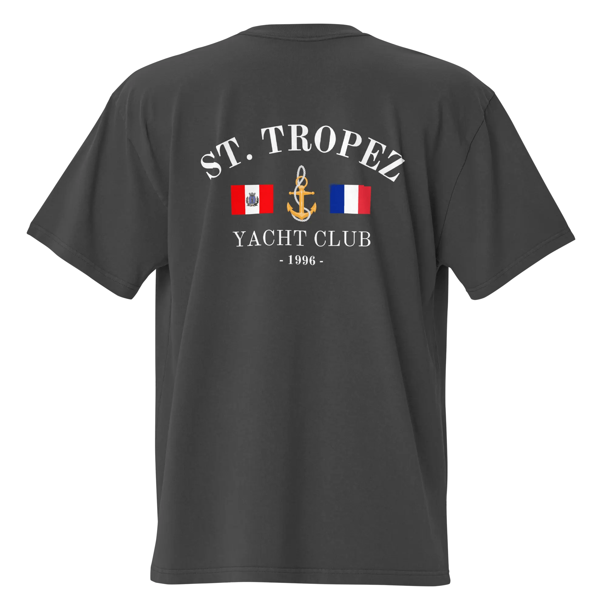 It is made from heavyweight 100% premium cotton that is soft and comfortable to wear. The t-shirt comes in a Faded Black Color. The 200gsm fabric is ideal for creating a timeless look that will never go out of fashion. The T-shirt is made in the style of the 90's and emphasizes the luxury yacht vacation.